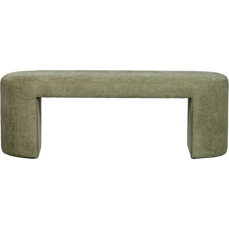 Dit Jannik bankje in fris olijfgroen is een waanzinnige toevoeging aan je interieur als je een bepaalde ruimte in huis wil opvullen met een sfeervol meubel. Jannik is van top tot teen bekleed met een zachte chenille wat het afgeronde, ovale design een uitnodigende uitstraling geeft. Een heerlijk bankje aan de eettafel, maar ook prachtig in een hal of in een leeg hoekje in huis!