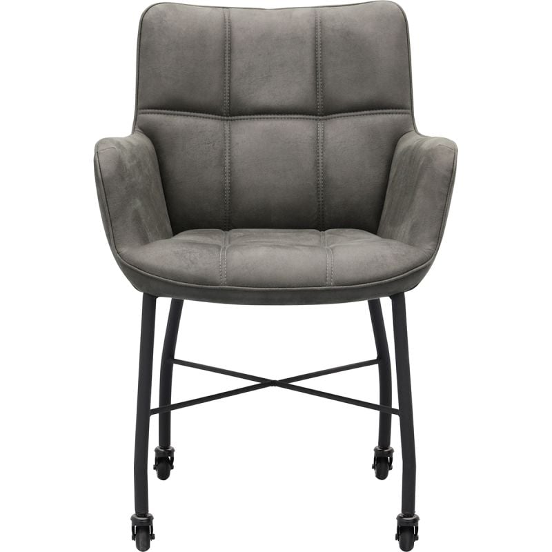 Gek op stoelen met wieltjes? Dan is eetkamerstoel Mae echt iets voor jou! Deze toffe stoel heeft gave kenmerken met de moderne stiksels in de kuip en het zwarte onderstel dat deze stoel een stoer uiterlijk geeft! Eetkamerstoel Mae is bekleed met een microvezelstof in de kleur antraciet en daarom eenvoudig te combineren met andere tinten. Bovendien is deze stof gemakkelijk in onderhoud! Mooi én praktisch dus. Een echte win-win!