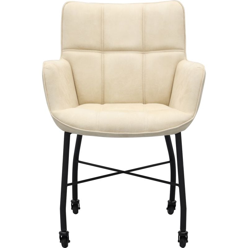 Ben je op zoek naar een eetkamerstoel met wieltjes? Dan is eetkamerstoel Mae echt iets voor jou! Deze gave stoel heeft toffe kenmerken met de moderne stiksels in de kuip en het zwarte onderstel dat deze stoel een stoer uiterlijk geeft! Eetkamerstoel Mae is bekleed met een microvezelstof in de kleur toffee en daarom eenvoudig te combineren met andere tinten. Bovendien is deze stof gemakkelijk in onderhoud! Mooi én praktisch dus. Een echte win-win!