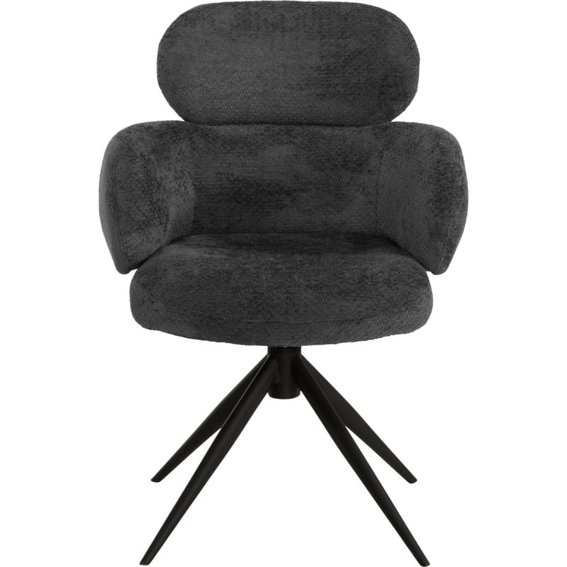 Eetkamerstoel Philou is jouw comfy partner voor lange diners en gezellige borrelavonden. De bekleding in zachte stof met de kleur movie anthracite voelt warm en luxe aan, terwijl de vulling van schuim zorgt voor een prettig zitcomfort. Met een breedte van zestig centimeter, een hoogte van tachtig centimeter en een diepte van zevenenzestig centimeter biedt Philou ruim zitvlak én een fijne houding. Extra handig: hij is volledig 360 graden draaibaar, dus makkelijk aanschuiven of bijdraaien aan tafel. De zwarte metalen poot geeft m een moderne touch die perfect past bij een industrieel of eigentijds interieur. Laat je verrassen door het comfort en design van Philou en probeer m uit in de winkel.