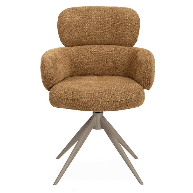 Eetkamerstoel Philou in sneak hazel straalt rust en verfijning uit. De zachte hazelnoottint en comfortabele vulling maken m een favoriet voor elke eetkamer. Dankzij de draaibare zitting ben je flexibel en zit je altijd in de juiste positie. De stonegrey metalen poot geeft een moderne touch. Fijn formaat van zestig centimeter breed, tachtig hoog en zevenenzestig diep stijl en comfort in één.