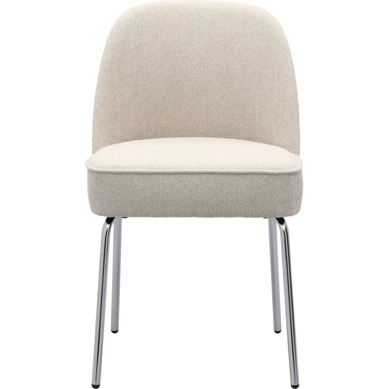 Eetkamerstoel Vogue, een hele fijne stoel om lekker lang op te tafelen. Niet alleen door een fijn zitcomfort, maar ook dankzij de ronde vormen van deze eetkamerstoel. Het slanke onderstel van chroom geeft Vogue een luxe uitstraling en de lichtgekleurde stof maakt deze eetkamerstoel helemaal passend bij diverse woonstijlen!