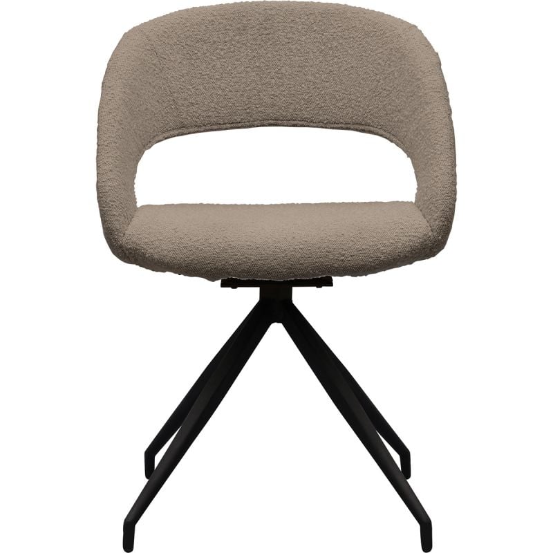 Pretty! Eetkamerstoel Yuna is een sfeervolle en unieke eetkamerstoel met een toffe kuip, een trendy bouclé stof en een draaibare poot met zwarte finish. Deze variant heeft de warme bruintint 'mousse' gekregen, maar Yuna is ook verkrijgbaar in het wit (pearl) en beige (toffee). Afzonderlijk mooi, maar in combinatie prachtig!