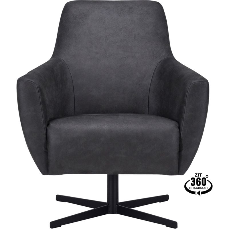 Fauteuil Helin is zo'n stoel die past bij ieder interieur. Z'n tijdloze look heeft Helin te danken aan de antracietkleurige tint van het microleer en het moderne design ervan. Helin komt met een zwarte metalen kruisvoet, heeft een zit- en rugvulling van comfy polyetherschuim en is als kers op de taart ook nog eens 360 graden draaibaar. Enthousiast? Bestel hem nu online of haal hem op in een van onze winkels!