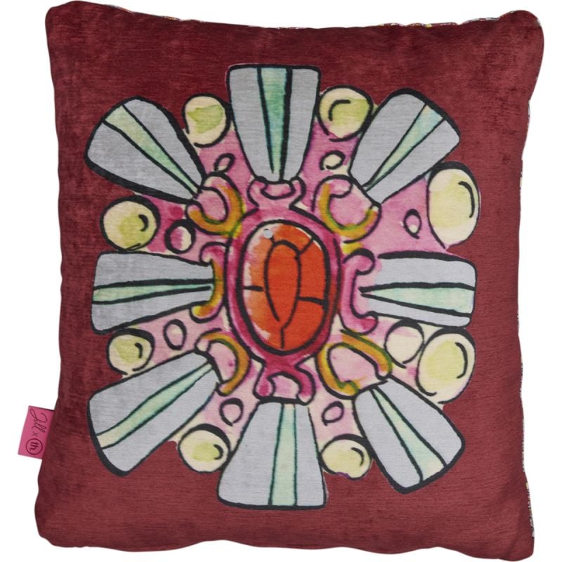 JILL X TRENDHOPPER. Met Sierkussen Ruby by Jill geef je ieder meubel waar je deze beauty op neerlegt een kleurrijke update! Dit vierkante sierkussen van 45×45 cm groot, is gevuld met siliconenbolletjes voor een zachte touch en is versierd met een van Jills toffe illustraties. Get yours now en geniet van een excentriek kussen vol funk!