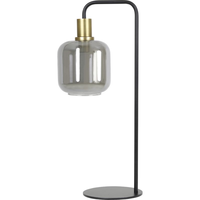 Tafellamp Loki: retro staande lamp bij Trendhopper voor op je bureau een dressoir, kast of tafel met glazen lampenkap. Detail in het design: de lamp buigt z'n hoofd als het ware. De armatuur is namelijk zo gebogen dat de lamp eronder hangt. Leuke tafellamp Loki voegt dankzij het minimalistische design met stijlvolle materialen veel sfeer toe aan je interieur. Het grijs-zwarte rookglas en bronzen fitting maakt van deze tafellamp een regelrechte blikvanger. Je kunt tafellamp Loki als kleine schemerlamp, bureaulamp of leeslamp gebruiken. Oftewel: als functionele verlichting of sfeerverlichting. Staat de elegante, luxe uitstraling van de tafellamp jou wel aan? Dan vind je het vast leuk om te weten dat Trendhopper een serie Loki-lampen heeft: hanglampen in verschillende designs en een vloerlamp. Goed om te weten over tafellamp Loki van Trendhopper: deze is niet dimbaar. De lamp heeft een zwart snoer met aan-uit schakelaar. De glazen lamp is 18 cm in doorsnede. De totale hoogte van de lamp